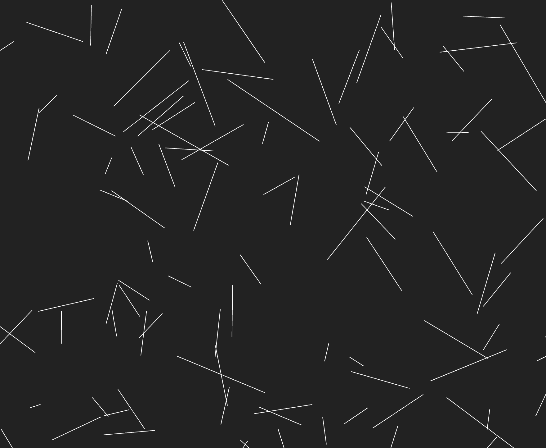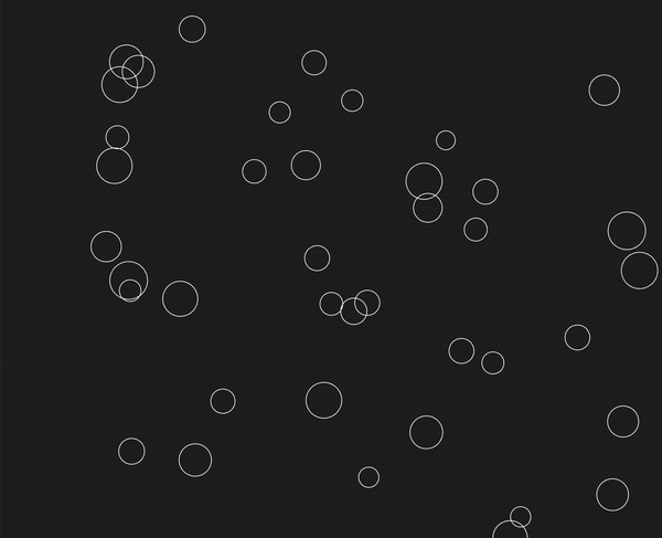 In artwork/sketch.js, take a look at lines 22-25 (which are responsible for creating the randomly sized and positioned circle). Then, using any kind of loop you want, try making 1,000 randomly generated circles. When you’re done, experiment with the following techniques to make some algorithmic, abstract art:
